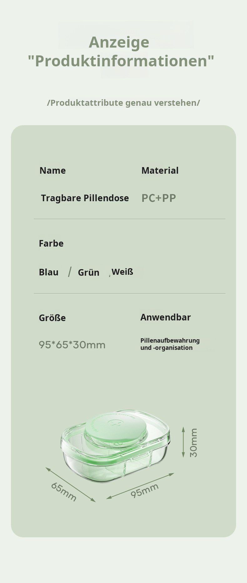 ● Vielseitiger Medizinschneider, ideal zum sicheren und präzisen Schneiden von Tabletten, Kapseln und anderen Arzneimitteln für eine einfache Dosierung. ● Ergonomisches Design mit rutschfestem Griff sorgt für komfortable Handhabung und verhindert versehentliches Abrutschen beim Schneiden. ● Hochwertige Edelstahlklinge garantiert langanhaltende Schärfe und ermöglicht müheloses Durchtrennen selbst harter Tabletten ohne Zerbröseln. ● Kompakte Größe und leichtes Gewicht machen den Medizinschneider zum perfekten Begleiter für unterwegs, auf Reisen oder im Alltag. ● Einfach zu reinigen durch abnehmbare Teile, hygienisch und sicher für den täglichen Gebrauch in jedem Haushalt geeignet.